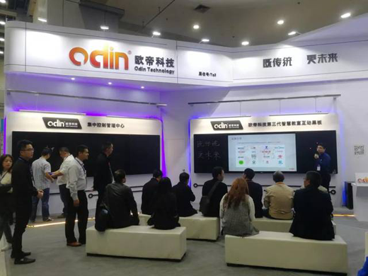 會展上,歐帝科技第三代智慧教室互動黑板引發不少人觀看體驗,智慧教室互動黑板不但呈現的課件內容清晰,也讓教學互動更加有趣。簡單快捷的人機交互、方便有效的應用教學、種類豐富的授課功能,無一不吸引著人們的眼球,令人駐足體驗。