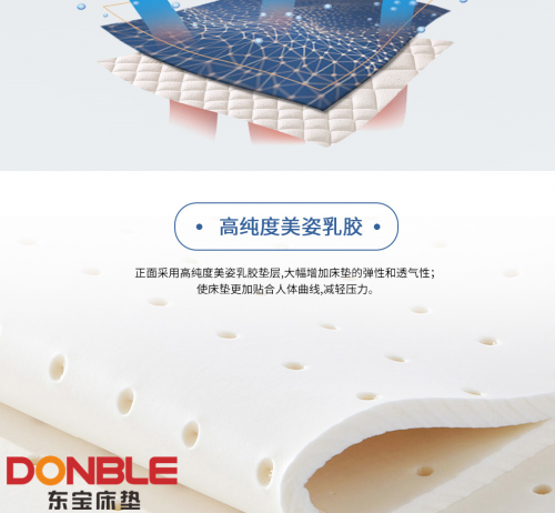 東寶乳膠床墊采用優(yōu)質(zhì)天然乳膠作為填充物。乳膠墊透氣性好,表面相對(duì)光滑,螨蟲不容易被吸附。天然乳膠含有250,000多個(gè)網(wǎng)狀通氣孔,可有效排出枕木中的預(yù)熱和水分。豐富的橡木蛋白還能抑制細(xì)菌的生長(zhǎng)和過(guò)敏原的潛伏,讓皮膚獲得良好的呼吸。