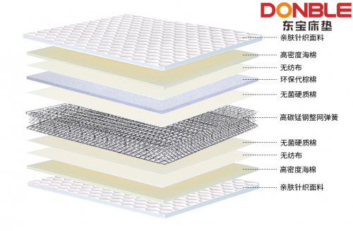 東寶護脊床墊的環保棕櫚棉位于高密度海綿的下層,夾在無紡布和高強度碳鋼網簧之間。雖然這種材料很硬,但由于它遠離人體,可以起到緩沖作用,同時也為彈簧的彈性提供了一層保護。這種材料之所以環保,是因為它采用了精鋼特有的無膠高溫熱壓工藝,無糖、無甲醛、透氣,是傳統椰棕的升級換代產品。雖然它像椰棕一樣對脊部保護和睡眠有很強的支持,但它不像椰棕那樣容易發霉和長蟲子及不透氣。