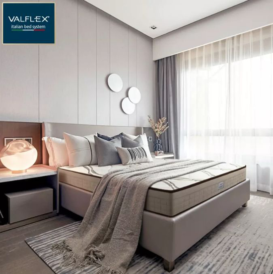 我們生活中使用的大多數(shù)彈簧床墊,它都由表層、填充層和支撐層構成。一個舒適的床墊,需要在這三個方面都做得優(yōu)秀。而VALFLEX床墊比普通面料更加舒適親膚,還有抑菌防螨的功能。在花紋設計上,也有獨特的裥花工藝,典雅大氣,顯得時尚美觀。