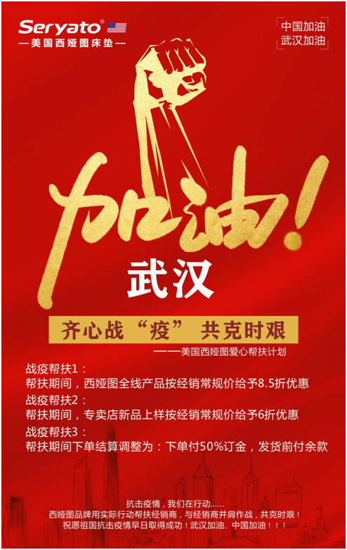 疫情無情,人間有愛!經濟復蘇需要各行業、萬千企業的共同努力,更需要所有家居業同仁、經銷商、工作者的努力拼搏。西婭圖品牌深信,只要每位西婭圖人勤勉刻苦,與時俱進,一定能創造新的發展空間。只要全國人民眾志成城,一定能早日戰勝疫情,恢復社會秩序和經濟發展。