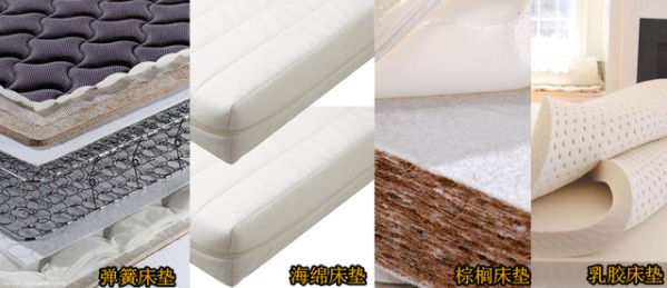 .床墊分為:彈簧床墊和非彈簧床墊,彈簧床墊就不用說了,你懂得,非彈簧床墊分為海綿床墊、棕櫚床墊、乳膠床墊等。