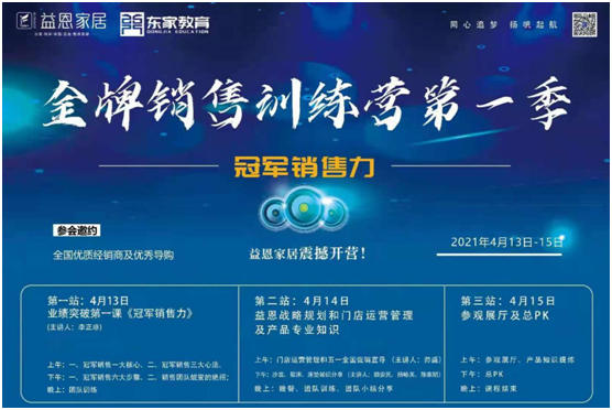 為順應(yīng)經(jīng)營業(yè)態(tài),適時調(diào)整營銷方向,搶抓市場機(jī)遇,4月12-15日,益恩家居攜手東家教育開展了為期三天的《金牌銷售訓(xùn)練營》,邀約全國優(yōu)質(zhì)經(jīng)銷商及優(yōu)秀導(dǎo)購共同參與。活動期間,益恩家居特邀東家教育金牌講師李正非老師帶來業(yè)績突破第一課——《冠軍銷售力》。李正非老師主要圍繞冠軍銷售一大核心、冠軍銷售三大心法、冠軍銷售六大步驟、銷售團(tuán)隊蛻變的絕招四方面進(jìn)行課程分享,課程內(nèi)容將專業(yè)理論知識培訓(xùn)和實(shí)訓(xùn)相結(jié)合,讓大家能夠更加全面掌握銷售的技巧。
