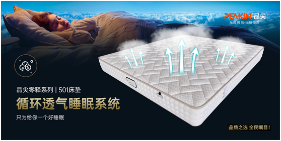 品尖零釋系列501床墊,從材料選用到內部結構設計,全方位保障您的睡眠質量,讓您遠離細菌、螨蟲、粘膩、腰酸背痛的煩惱,為您創造美夢的溫柔鄉。