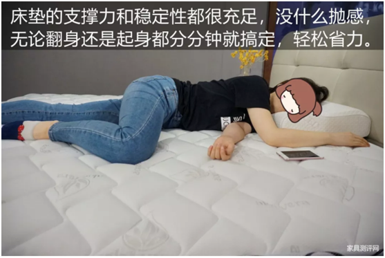 床墊的支撐力和穩定性都很充足,沒什么拋感。無論翻身還是起身都分分鐘就搞定,輕松省力。對于偏胖的人或者老人來說,或者是睡覺不安分的人,這樣的設置就很暢快了。