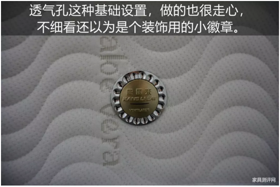 四周的加強性護邊支力彈簧也多了8個,圍邊加固的更加結實,實際使用面積自然也跟著增加。兩人同睡時,也不容易有下滑感。側面筆直流暢的走邊,視覺上的舒適感不錯,值得一個好評!圍邊用的比較密集的小波浪型,進一步加強了整體的舒緩氣質。就連透氣孔這種基礎設置,做得也很走心。隱藏式透氣孔,不細看還以為是個裝飾用的小徽章。