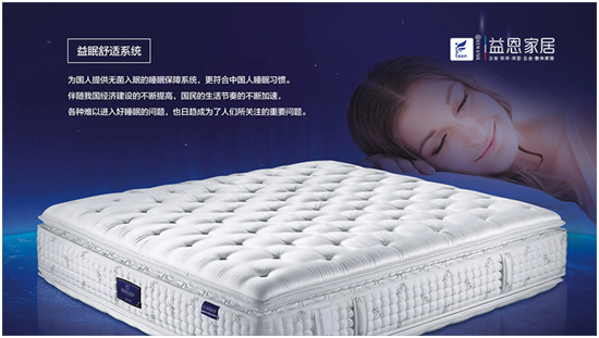 睡個(gè)好覺,從益恩家居開始。作為“中國十大床墊品牌”,益恩家居正在以產(chǎn)品、口碑和渠道的用戶體驗(yàn),打造品牌發(fā)展的“鐵三角”,用設(shè)計(jì)改變中國人的生活,用最科學(xué)的技術(shù)為中國人打造頂級(jí)健康睡眠。在企業(yè)創(chuàng)立的27年,益恩家居致力于打造睡眠寢具行業(yè)品牌,當(dāng)將會(huì)成為國內(nèi)高端床墊市場不可忽視的重量級(jí)選手。