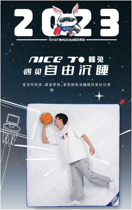 始終致力于研究與開發(fā)健康睡眠產(chǎn)品的星港家居,關(guān)注到當(dāng)代年輕人的睡眠問題。為了給大家打造更優(yōu)質(zhì)的深睡體驗(yàn),在2023年來臨之際,特推出了兔年新品Nice to 瞇兔·床墊,用層層呵護(hù),為深睡護(hù)航。