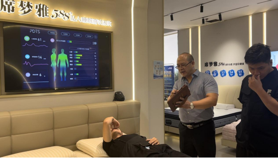 展會現(xiàn)場,觀展嘉賓們親身體驗(yàn)席夢雅588+私人睡眠測試系統(tǒng),席夢雅工作人員根據(jù)數(shù)據(jù)詳細(xì)分析他們的睡眠情況。席夢雅團(tuán)隊(duì)所展現(xiàn)出的專業(yè)與細(xì)心收到一致好評。