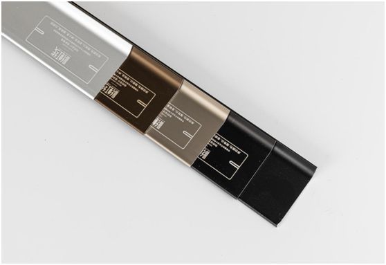 這類踢腳線安裝便利,防火防潮,也好擦洗,一般在公共區(qū)域會(huì)比較常見。有鋁制合金的,也有不銹鋼的。鋁合金可做多種造型和紋理,比如木紋、拉絲等,視覺效果柔和、造價(jià)低、細(xì)節(jié)處理得好。但是柔韌性差,不耐磨,容易變形,質(zhì)感冰冷,對(duì)于北方室內(nèi)有暖氣的環(huán)境也不適用。