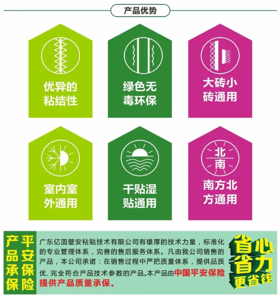 面對市面上成千上百種瓷磚類型,如何讓它們牢牢粘在墻上。只有選擇匹配的瓷磚膠、背膠相輔相成搭配使用,才能夠發(fā)揮超強粘結力效果,有效避免掉磚的悲劇發(fā)生。