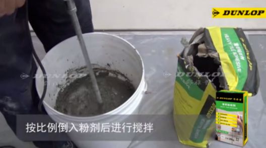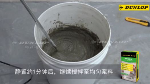 在空桶中倒入一定清水,按比例倒入粉劑后進行攪拌,靜置約1分鐘后,繼續攪拌至均勻漿料。