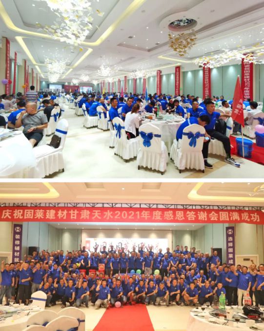 為了表達對泥瓦工師傅們的敬意,近日,固萊集團攜手甘肅天水市代理商董成龍聯合舉辦了“中國夢·固萊夢·我的夢,固萊·天水2021年度感恩答謝會”。350多位來自西北各地的泥瓦工齊聚一堂,把酒言歡,共同度過了一個溫暖又涼爽的盛夏之夜。