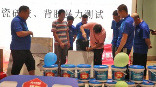 都說自家產品牛,但我們固萊不一樣,我們是話少產品好,低調又謙遜的實力派。有實驗有真相,活動現場特意進行了一場瓷磚膠、背膠性能打雜測試,眾目睽睽之下,驗證了固萊的瓷磚膠、背涂膠到底有多牛。