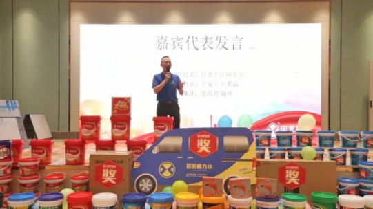 活動剛開場,作為本次聚會的東道主和主要籌備人,固萊魔力水天水代理商董成龍就上臺為大家作歡迎致辭。身為一個典型的西北漢子,董總雖然略顯粗獷、憨厚,但卻有著沖天豪情,有著堅韌不拔的壯志。也正是他身上這種融合了固萊精神與西北豪邁基因的特質,才吸引并聚攏了300多位泥瓦工師傅參與本次盛會。