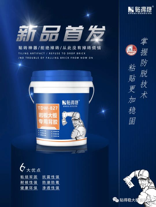 我們深入了解裝修施工的難點,潛心研發了專門針對巖板大板的秋季新品——貼得穩TDW-827巖板大板專用背膠。