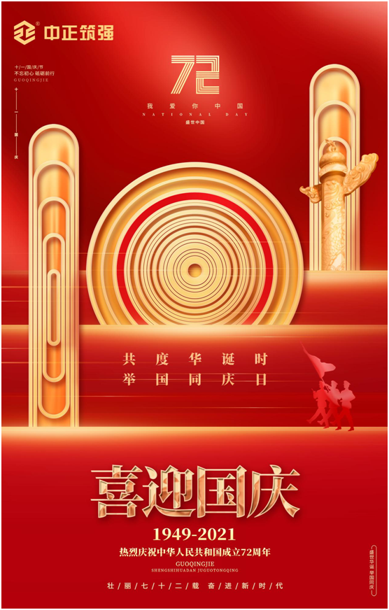 在祖國不斷發展,市場競爭加劇的今天,品牌強則國強,中國品牌不僅僅是市場的需要,更是一個國家的名片。中正筑強將繼續秉承優良傳統,不斷地挑戰自我,開拓創新,與時俱進;在產品、技術工藝上精益求精,臻于至善,不斷尋求新的突破,將更好的產品呈現給消費者,用實際行動讓中國品牌走向世界,為祖國獻禮。