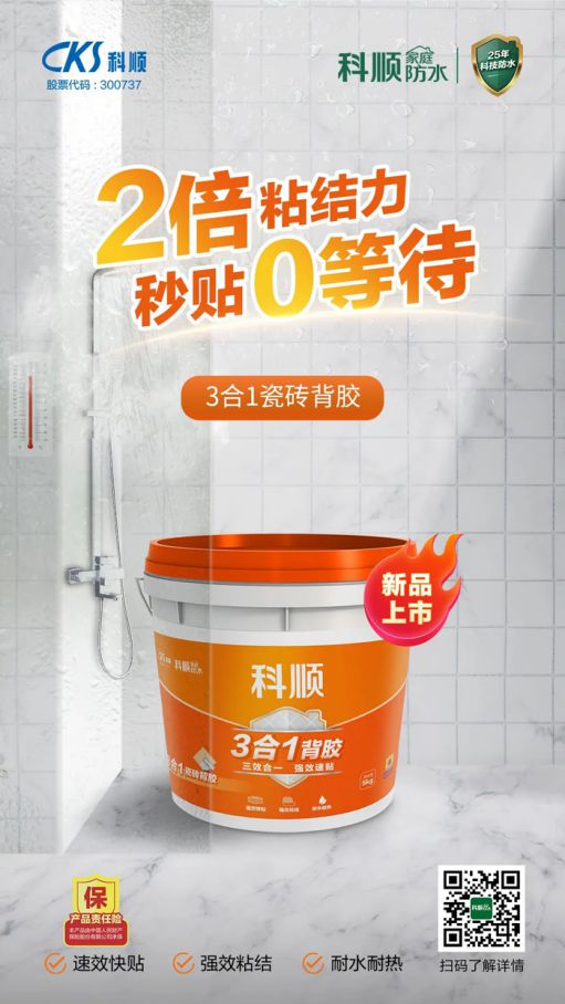 經拉拔測試數據顯示,科順3合1瓷磚背膠粘結強度可達到瓷磚膠行業C1標準要求2倍以上*,能有效提升瓷磚鋪貼系統的安全性。