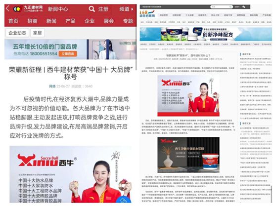 2022年上半年,西牛建材加大力度進行品牌宣傳,先后與國內多家知名網站達成戰略合作伙伴關系。在行業下一個財富風口處,借助社會媒介的影響力,全面助力品牌騰飛。