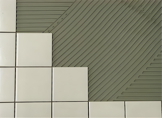 3. 施工鋪貼:使用齒形刮刀將瓷磚膠均勻涂抹在基面上,或直接在瓷磚背面涂抹,然后按照預定位置鋪貼瓷磚,用橡皮錘輕輕敲打,確保瓷磚與基面緊密貼合。