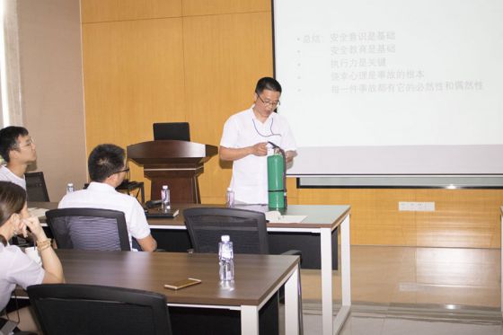 培訓中,孫主任為我們講解消防器材的使用和配備,在生產區著重注意用電事項,不抽煙,做好易燃物資的管理,囑咐各主管做好日常檢查。