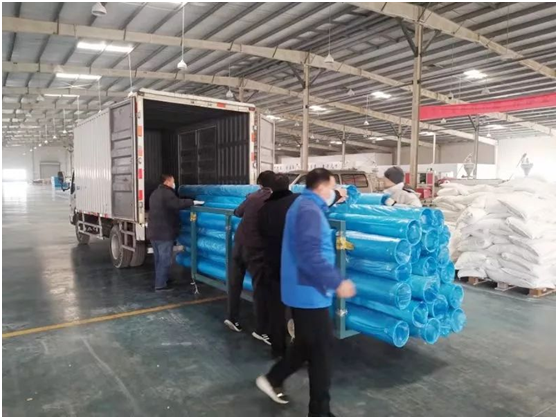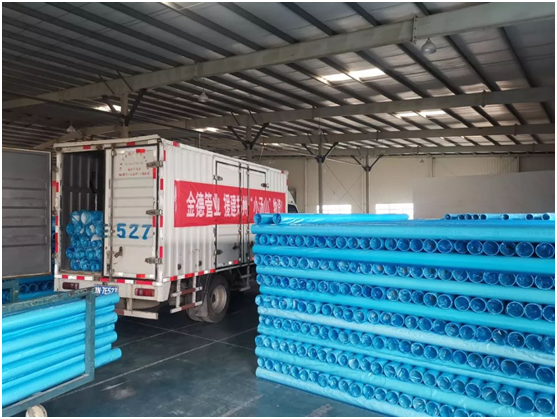 1月29日17點30分,金德管業第一批援建物資的車隊順利到達鄭州“小湯山”醫院項目現場。