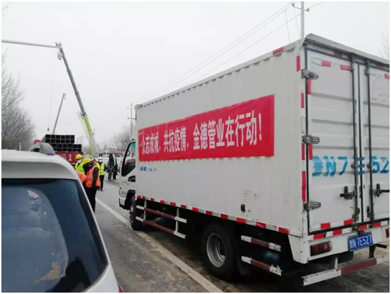 1月28日晚9點,金德管業對河南鄭州“小湯山”醫院援助計劃正式展開。金德管業山東工業園總經理楊洋和相關負責人放棄休假,帶領各部門員工連夜安排援助物資裝車。