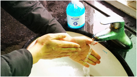 “飯前便后要洗手”這句兒時的順口溜如今被賦予了新的生命,成為當(dāng)下最流行的防疫名言。結(jié)束了一上午的工作,用洗手液認(rèn)真的將手清洗干凈,不僅是對自己負責(zé),更是對大家負責(zé)。