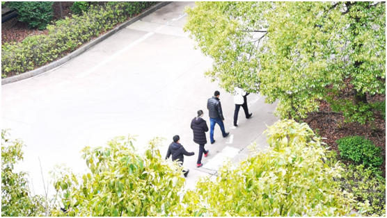 為確保用餐安全,金德園區(qū)內(nèi)嚴(yán)格執(zhí)行“相距一米,排成一列,分時分批用餐。”偶然間遇到一列井然有序的縱隊經(jīng)過,讓人仿佛有種在部隊的錯覺。這一幕,讓我們感動,也讓我們堅信,在每一位人民的共同努力下,疫情終會被擊退,我們終將迎來生機勃勃的春天。