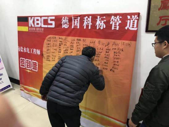 來自科標管道南方區域營銷總監雷總給到場的嘉賓詳細的講解了我們科標在海鹽的操作模式,都受到了各位來賓的的認可。尤其是水工師傅對于科標的配套系統完善也給出了高度評價,認為我們從給水管到前置再到凈水機一整套健康飲水系統,給大家解決了跟多的麻煩, 在所有的德系品牌里面,我們的配套系統和產品的更新一直走在前列。