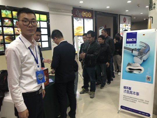 德國科標管道創富商業發布會緊張有序的進行中,會場前瞻及各為家裝公司老板和各位水電工師傅排隊有序入場,也體現了對于德國科標管道的認可和重視!!!