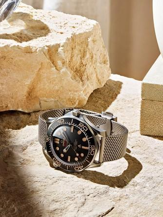 丹尼爾克雷格認為一只特務表必須要輕盈,他也建議要加入復古元素與色澤,于是歐米茄為海馬潛水300米系列同軸擒縱42毫米大師天文臺007版腕表,進行「瘦身」,運用2級鈦金屬打造表殼、網(wǎng)紋表煉,表圈則為鋁合金材質(zhì),并點綴復古味道的熱帶(tropical)」棕色,實踐丹尼爾克雷格對特務表的夢想模樣。
