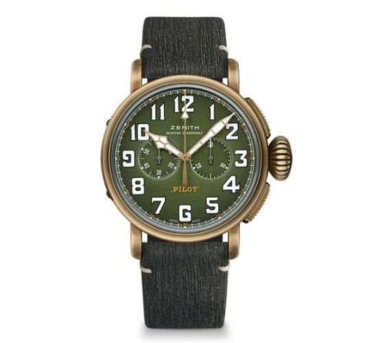 搭載品牌知名的El Primero導柱輪計時碼表機芯,Zenith全新Pilot Type 20 Chronograph Adventure腕表,再度將來自航空儀器的靈感,延伸到設計當中。此枚腕表充滿濃濃的軍事風格,不僅以粒面卡其綠打造表盤,表殼特別選以青銅材質制成,讓整體充滿濃濃復古基調。而鈦金屬表背更鐫刻上Zenith飛行儀器標志,呼應腕表與品牌的核心精神,并備有迷彩鱷魚皮表帶與卡其色小牛皮表帶可供替換。