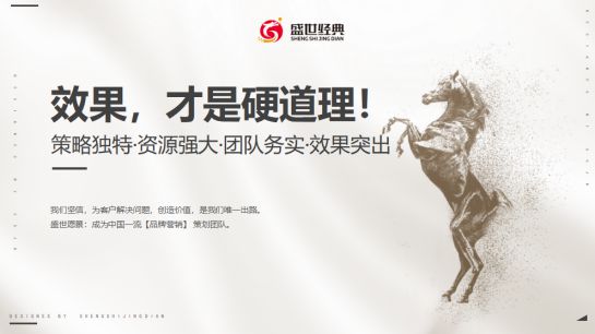 盛世經典,一家擁有16年品牌營銷實戰經驗的中國品牌營銷策劃專家,專為中國中小企業提供營銷戰略、企業策劃、產品策劃、品牌策劃、渠道招商等八大服務體系。截止目前,我們已為上百家企業提供優質品牌服務,積累豐富的品牌傳播經驗,更專業、更高效地助力企業可持續發展。