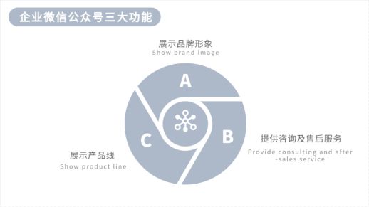 企業(yè)首先應(yīng)該明確的一點(diǎn)是:微信公眾號(hào)是移動(dòng)時(shí)代的企業(yè)官網(wǎng)。在PC時(shí)代,一個(gè)企業(yè)需要有自己的官方網(wǎng)站來展示自身實(shí)力和形象,一個(gè)連官網(wǎng)都沒有的企業(yè)在消費(fèi)者看來是不值得信任的;而在移動(dòng)時(shí)代,公眾號(hào)承接了官網(wǎng)的功能。企業(yè)需要通過公眾號(hào)展示品牌形象、展示產(chǎn)品線、提供咨詢和售后服務(wù)功能。這才是企業(yè)公眾號(hào)最應(yīng)該承擔(dān)的角色,它是企業(yè)的品牌大使。