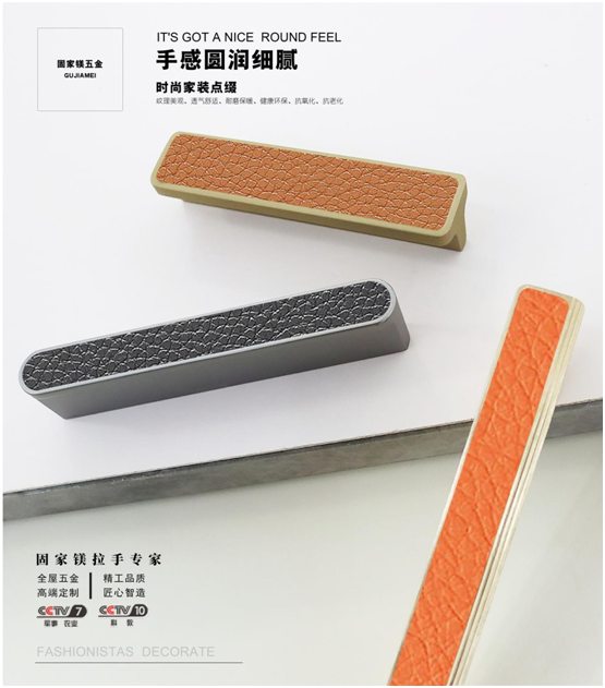 皮革是西方貴族的象征,皮革獨有的高貴與優雅一直被人們所喜愛,不僅是皮革的氣質,還有皮革的質感和手感。將皮革的魅力運用到拉手里,成為五金拉手的一重大學問。固家鎂五金拉手選用優質皮革——“會呼吸的皮質”,最大程度保留真皮的天然毛孔。這種材質