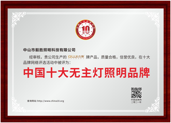 來自中國“燈飾之鄉”的GUJI古集照明通過組委會的重重審核和評估,一舉奪得“中國十大無主燈照明品牌”榮譽稱號!
