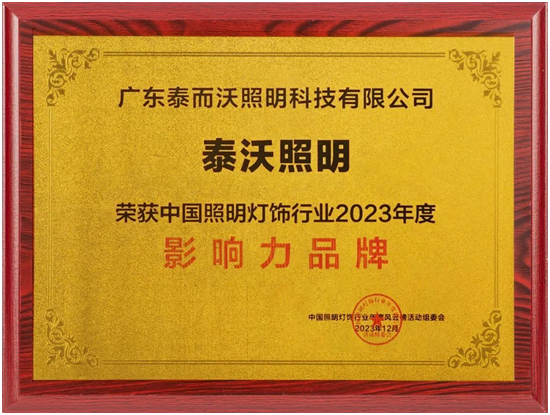 泰沃照明 榮獲 中國(guó)照明燈飾行業(yè)年度風(fēng)云榜