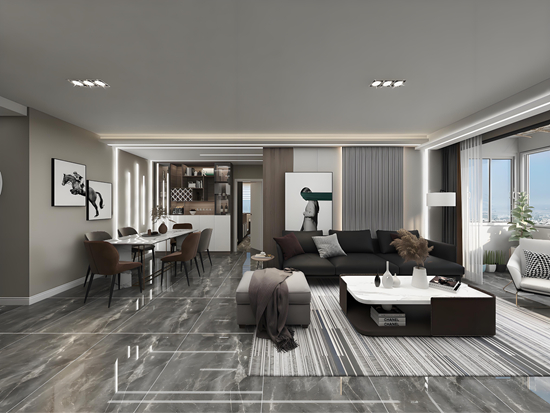 傳統客廳照明依賴吊燈形成的"光之島嶼",而無主燈設計通過三層光環境構建空間敘事:基礎照明(燈帶/反燈槽)勾勒空間輪廓,重點照明(深杯防眩射燈)突出裝飾焦點,戲劇照明(線性燈/投影燈)制造場景張力。這種分層邏輯恰似電影布光中的主光、輔光與效果光,使墻面成為天然幕布,家具成為光影演員。