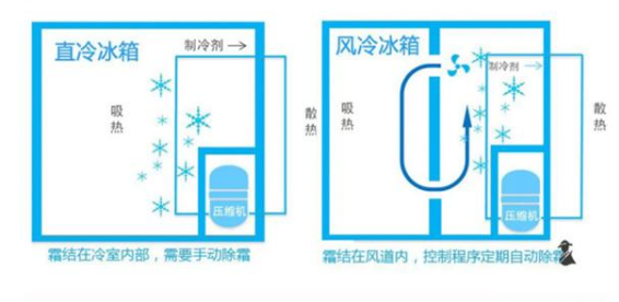 而風冷冰箱是通過循環方式達到制冷效果,由于冷氣強制循環所以冰箱內部冷卻速度快,溫度更為均衡,還除去的手動除霜的麻煩。
