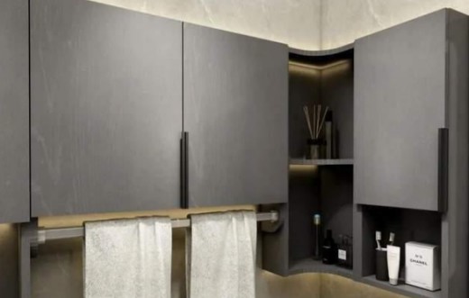 將柜子或洗衣機放在下方可以充分利用空間,在洗漱之后,直接將衣服扔進去也非常方便,洗衣機設計在水槽下方,排水非常方便。洗漱臺可以根據洗衣機的尺寸進行定制。
