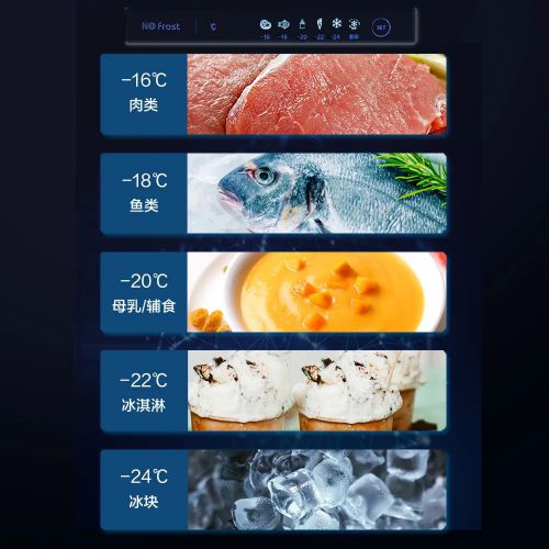 五檔溫控結合立式空間分布設計,肉食海鮮、輔食與乳制品、速凍食品均可以在適合的溫度環境長期保存。