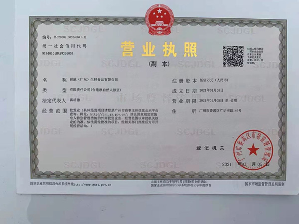 企業(yè)名稱: 荷威(廣東)生鮮食品有限公司