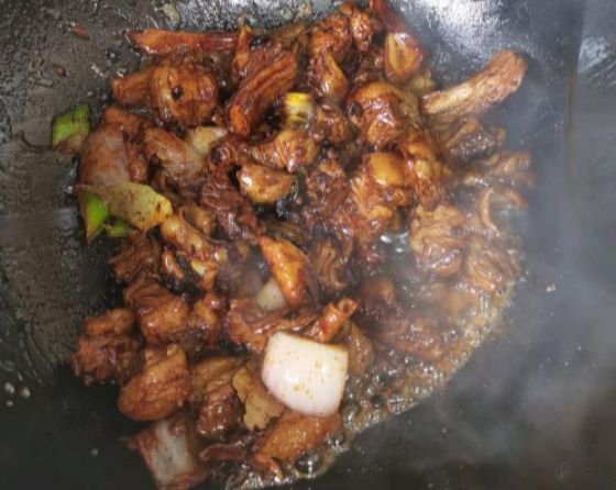 第六步、加入土豆塊,繼續燉半小時。加入適量鹽調味,大火收汁,湯汁濃稠后即可出鍋。如果想用湯汁泡飯,可以多留點湯。