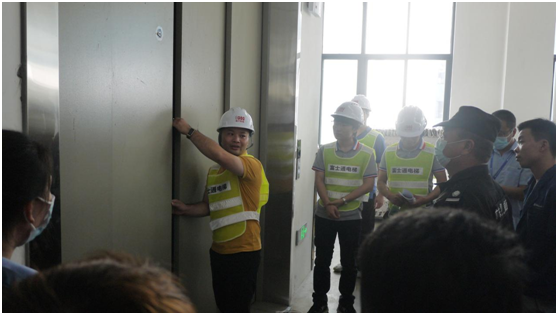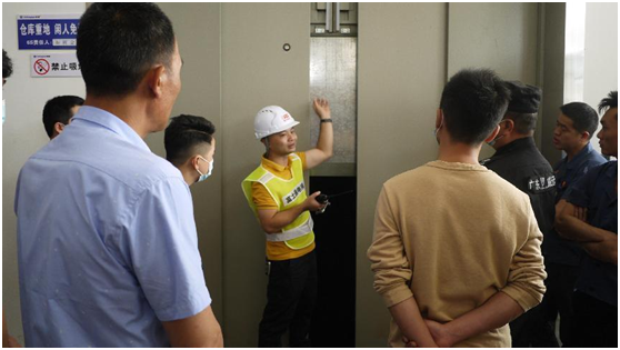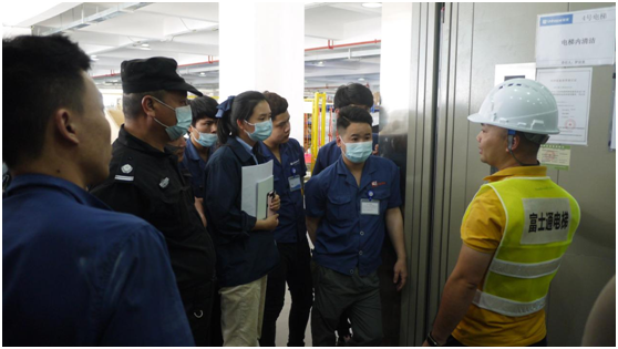 授課后,徐世雄帶領庫博集團維護部門一行培訓學員,依據培訓知識對園區內的客梯、貨梯進行實地操作練習。