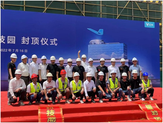 該項目首期投資6億元,首期產業園總體規劃面積10萬平方米,主樓高71.6米,于2020年開工建設,2022年7月16日順利封頂,預計2023年第一季度投入使用,預計當年產值將達到30億元,未來產值將超50億元。