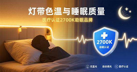 未來,隨著AIoT技術的滲透,助眠燈帶正從“被動發光”進化為“主動守護”。新一代產品已集成毫米波雷達,可無接觸監測呼吸頻率與翻身次數,自動調節亮度與色溫;部分高端型號甚至能聯動智能床墊,根據睡眠階段推送不同波長的光波,實現“光療級深度修復”??梢灶A見,當“光環境健康管理”成為智能家居標配,2700K將不僅是色溫數值,更是現代人對抗內卷、奪回睡眠主權的溫柔武器。