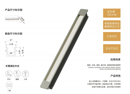 這一系列產品不僅解決了廚房吊柜下的照明問題,更為定制家居行業帶來了優質降本的燈光方案。通過深度研究各種柜體照明的應用需求,Italy唯美系列細化了16款產品,全面覆蓋家居、辦公家具及智能衛浴的燈光解決方案。每一款產品都融合了現代與意式唯美風格,去除繁冗,追求簡潔,以藝術提升空間的藝術性,打造時尚優雅的氛圍。