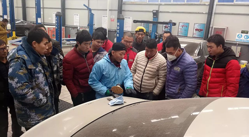 當今汽車后市場鈑噴行業,工藝用料亂象叢生,汽修廠普遍為追求低成本,使用質次價低的產品,采用不規范的工藝,造成的質量問題頻出。保定易縣甲蟲王配色中心孔維庚先生進入行業幾年來,一直受到此問題困擾,看在眼里,急在心中。了解到中國保鴻的鈑噴交流活動做的如火如荼,深受廣大業界同仁的一致好評。就有心在易縣舉辦一場活動,經過多次溝通,終于成功邀請到中國保鴻的技術團隊來到易縣,為規范鈑噴技術提高行業水平做出一份努力。