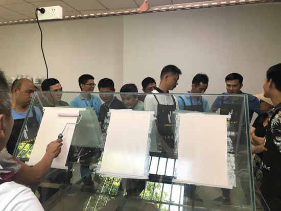 萬眾期待下,本場會(huì)議最重要的藝術(shù)涂料手藝培訓(xùn)環(huán)節(jié)正式開始。梨牌派出專業(yè)的施工師傅現(xiàn)場教學(xué),向現(xiàn)場嘉賓演示藝術(shù)涂料的涂刷“招式”,并反復(fù)講述涂刷過程的重點(diǎn)和難點(diǎn),讓現(xiàn)場嘉賓更透徹地明白其中的“真理”。在施工師傅手把手的教學(xué)下,即使是初學(xué)者,也能很好地掌握到梨牌藝術(shù)涂料的涂刷技巧。